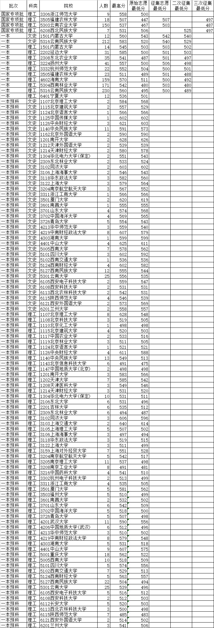 云南省2019年8月11日普高录取日报