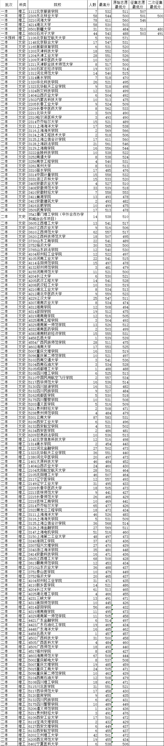 云南省2019年8月17日普高录取日报