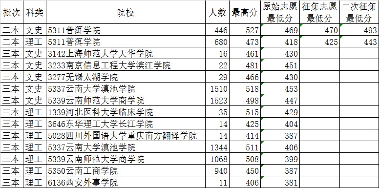 云南省2019年8月18日普高录取日报