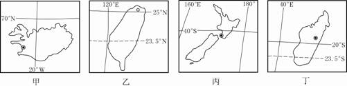 21.图4表示甲、乙、丙、丁四个国家的人口出生率与死亡率。其中反映人口高出生率、低死亡率、高自然增长率特点的国家是