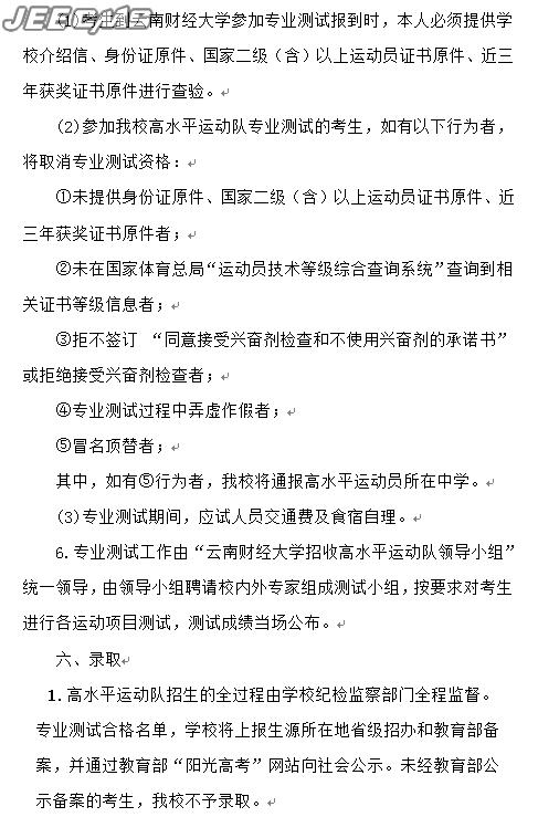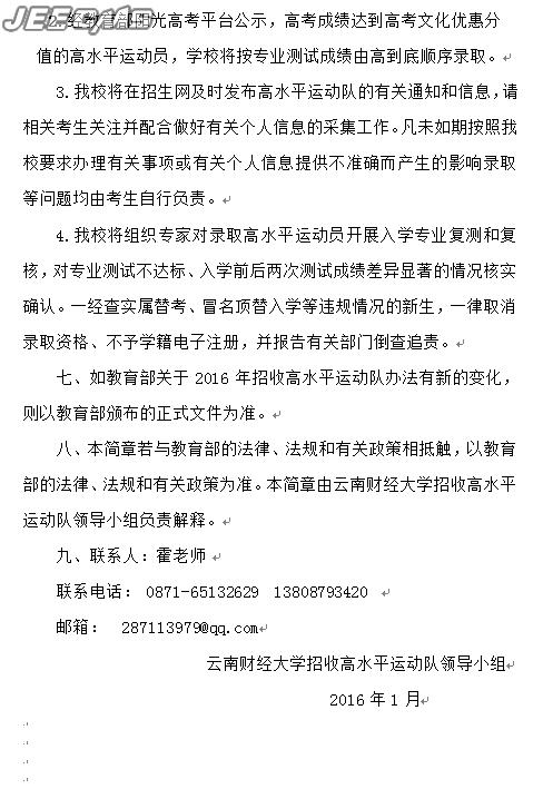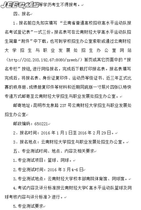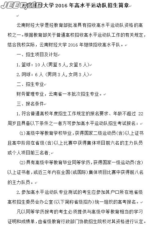 云南财经大学2016年高水平运动队招生简章