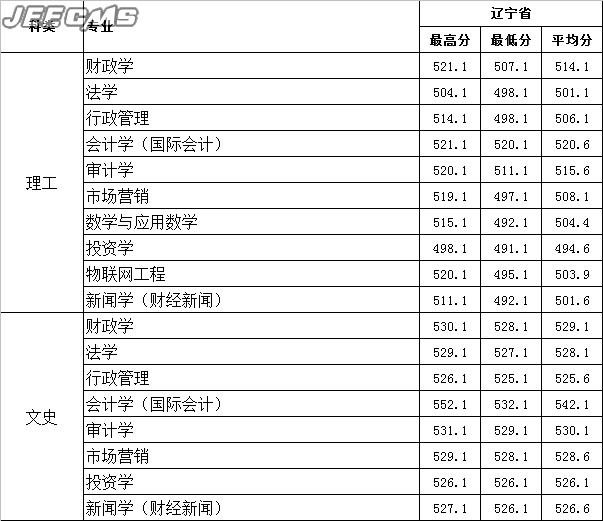 云南财经大学2015年内蒙古自治区录取情况一览表