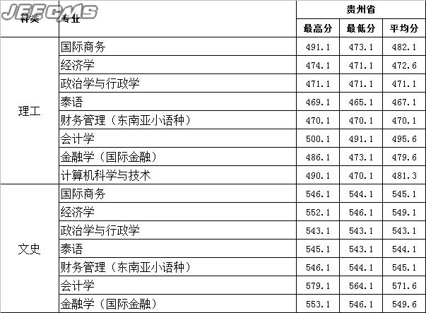 云南财经大学2015年贵州省录取情况一览表
