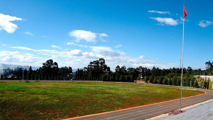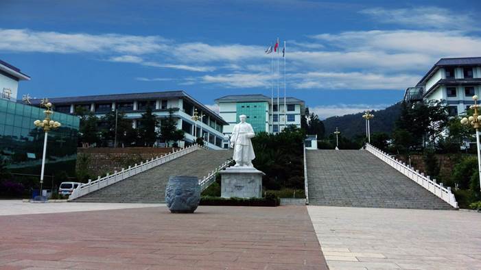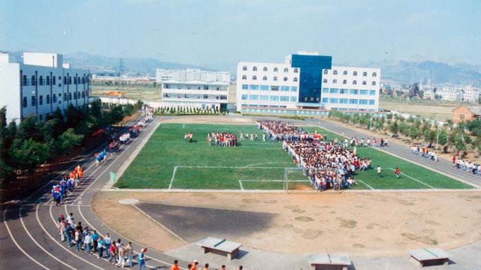 (1995年的校园,谁曾想,十年,对面山上的采石场成了学校的二校区,曾经的荒芜而今已是生机盎然)