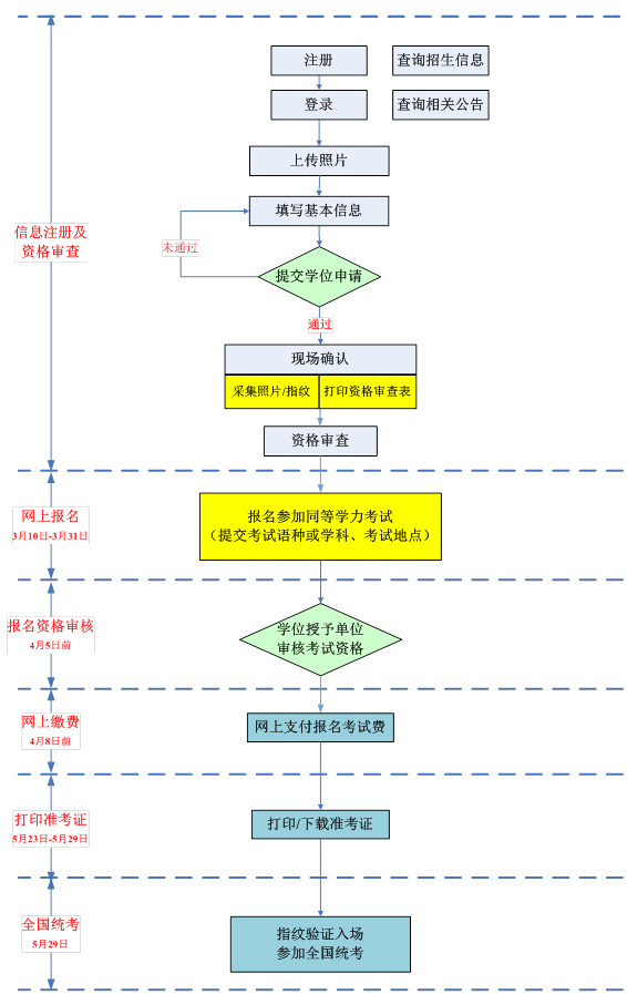 ②3月10日前,学位授予单位将所有拟参加2016年同等学力全国统考的申请人个人特征信息(指纹、电子照片等)采集完毕。