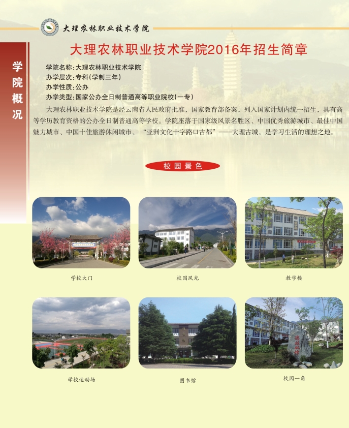 大理农林职业技术学院2016年招生简章