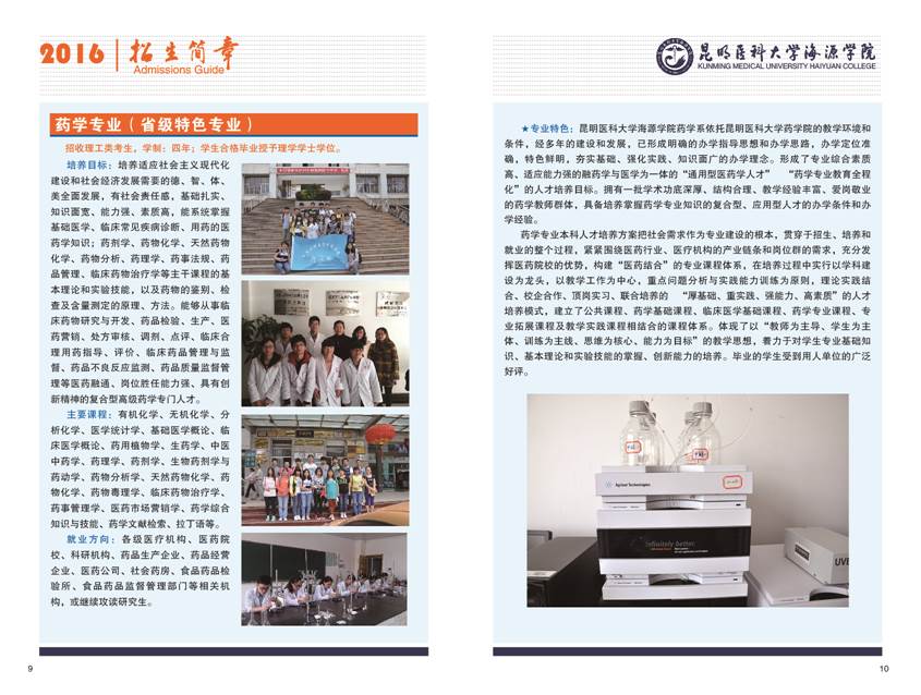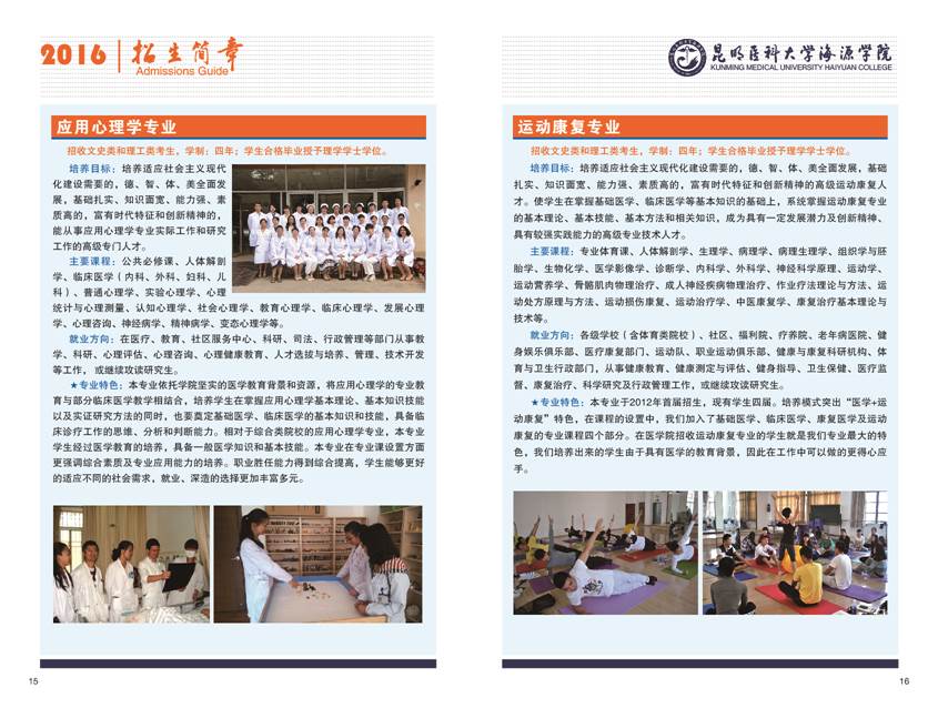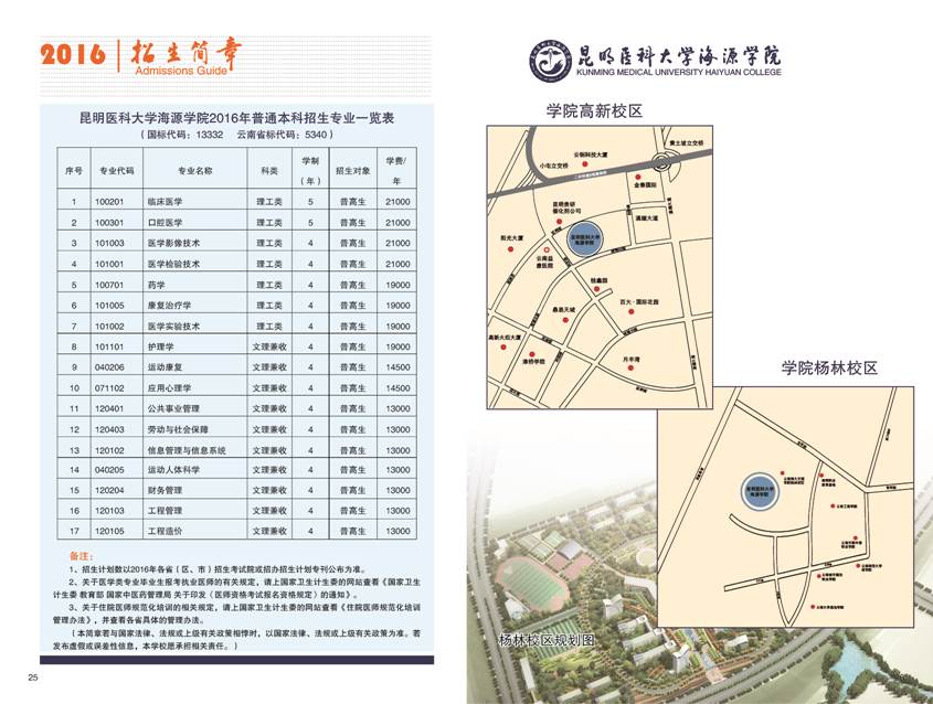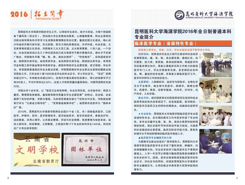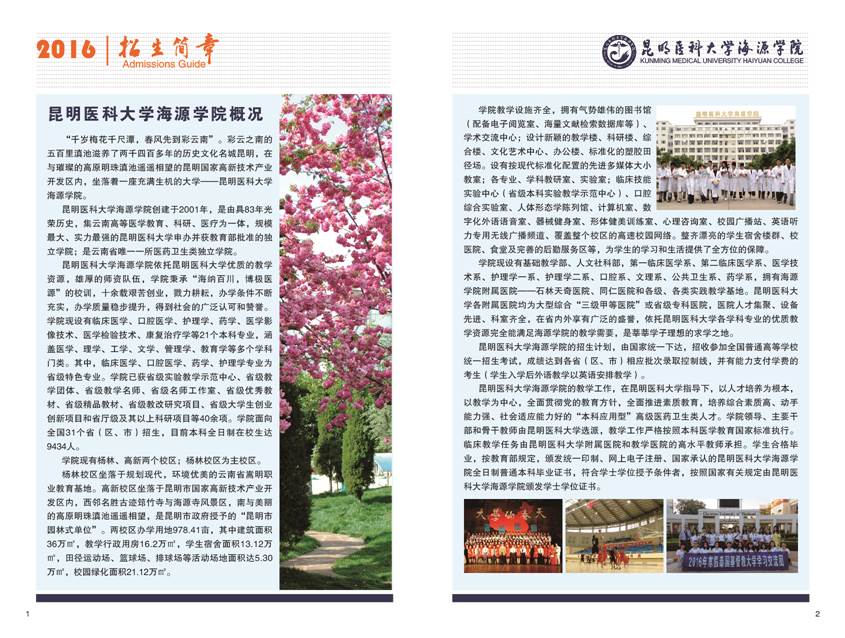 昆明医科大学海源学院2016年招生章程