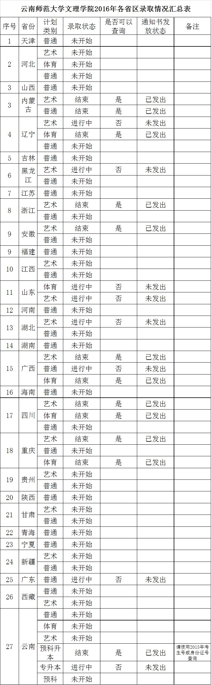 云南师范大学文理学院2016年各省区录取进度一览表及查询入口