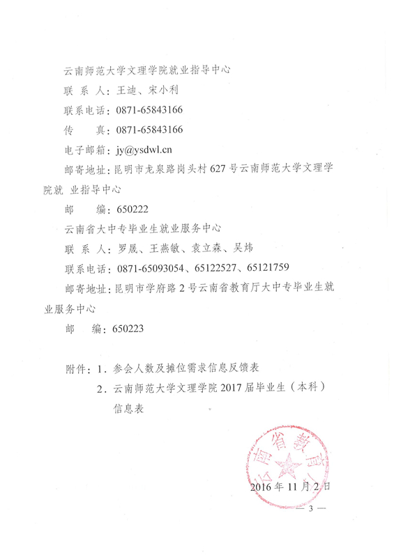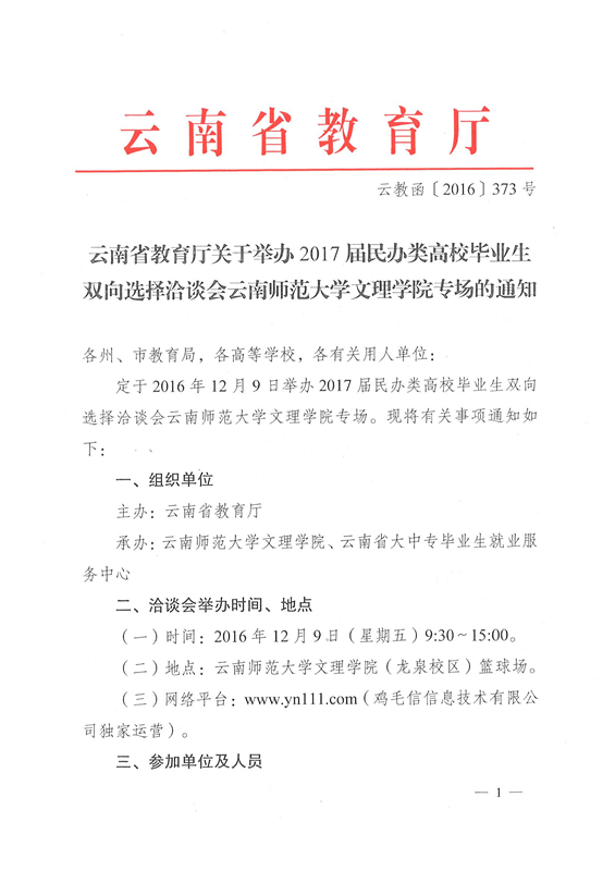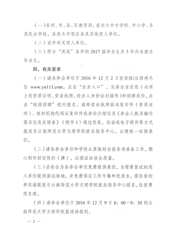 云南师范大学文理学院2017年民办类毕业生专场招聘会通知