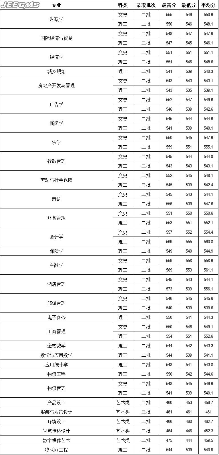 云南财经大学2016年四川省录取情况一览表