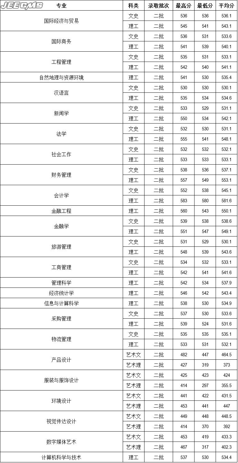 云南财经大学2016年山西省录取情况一览表