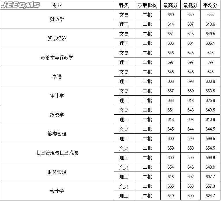 云南财经大学2016年海南省录取情况一览表