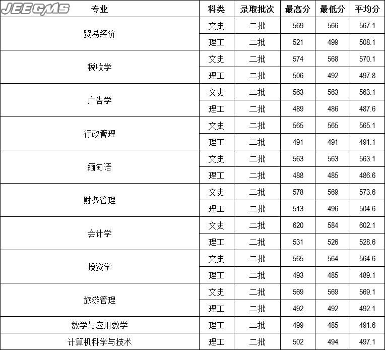 云南财经大学2016年广西壮族自治区录取情况一览表