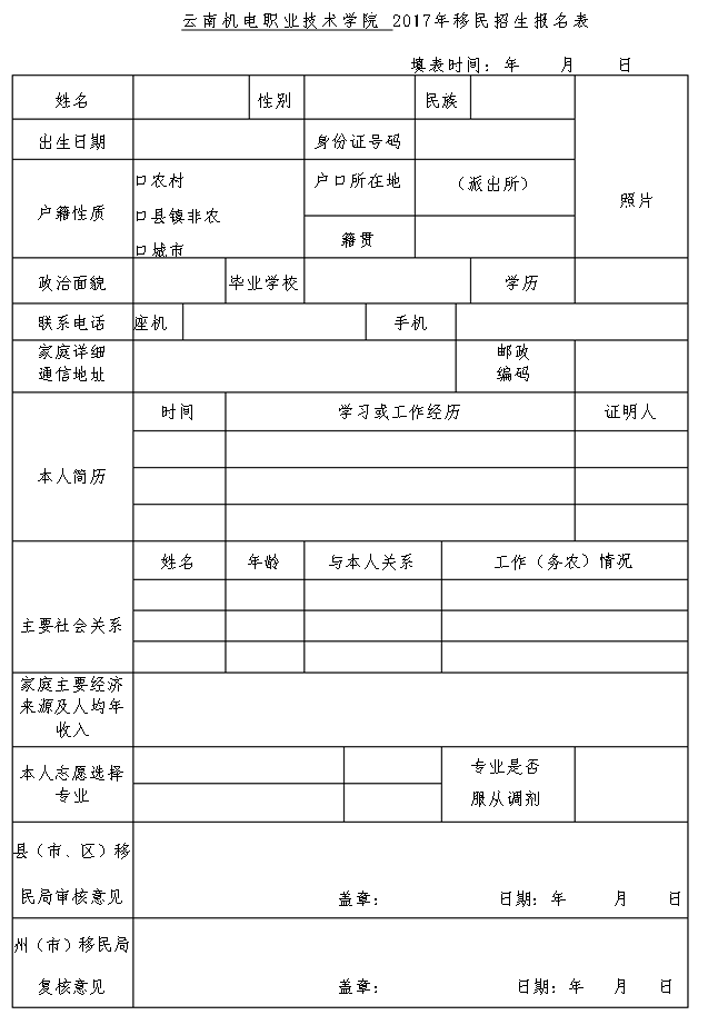 3、对录取到我院的云南省范围内大中型水库移民安置区的移民考生,由省财政厅、省移民局给予学费和生活费补助,每年每生8000元。此类考生报到前须如实填写《移民学生招生报名表》(见附件2 一式三份),到生源所在地的县(市、区)移民局和州(市)移民局签字盖章,报到后交至学院招生办公室。