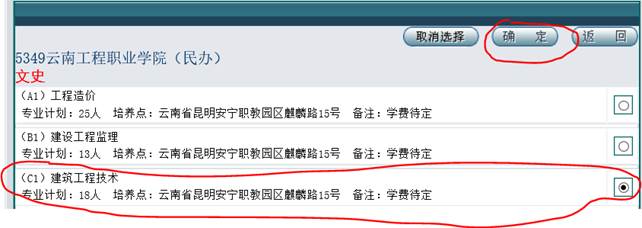 第六步,在“院校志愿信息列表”中选择“(5349)云南工程职业学院”,点击