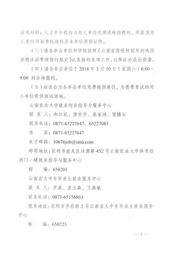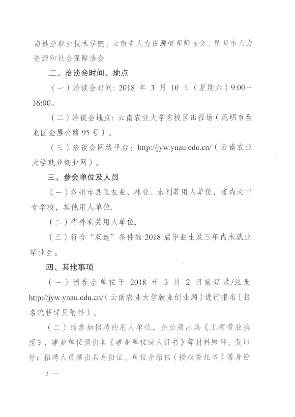 2018年云南农业大学毕业生双向选择洽谈会通知