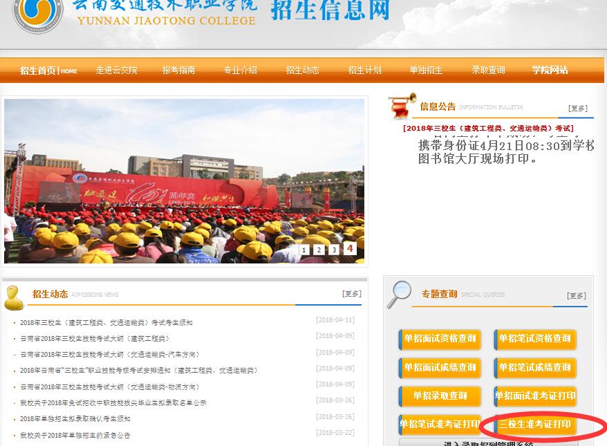 2、进入招生网后,在网页右下侧找到“三校生准考证打印”栏目。