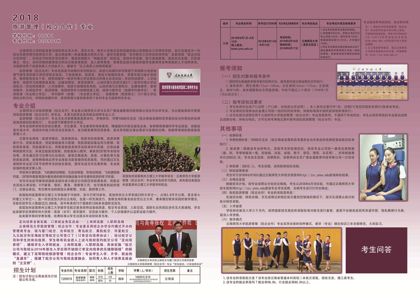 云南师范大学2018年旅游管理(校企合作)专业招生简章