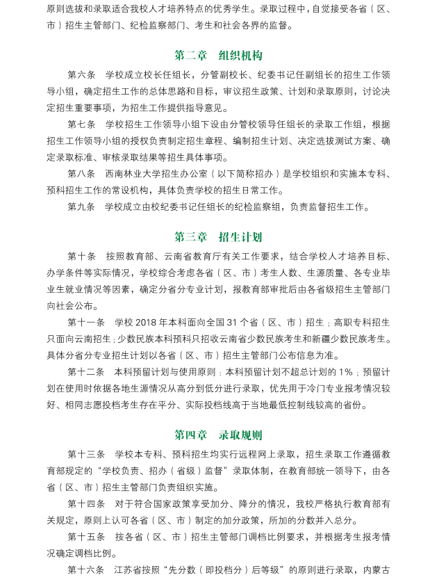 西南林业大学2018年本专科招生章程