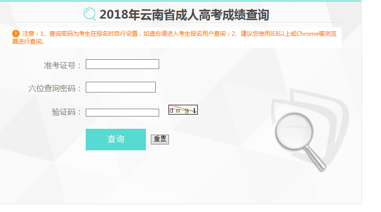 2018年云南省成人高考成绩查询入口