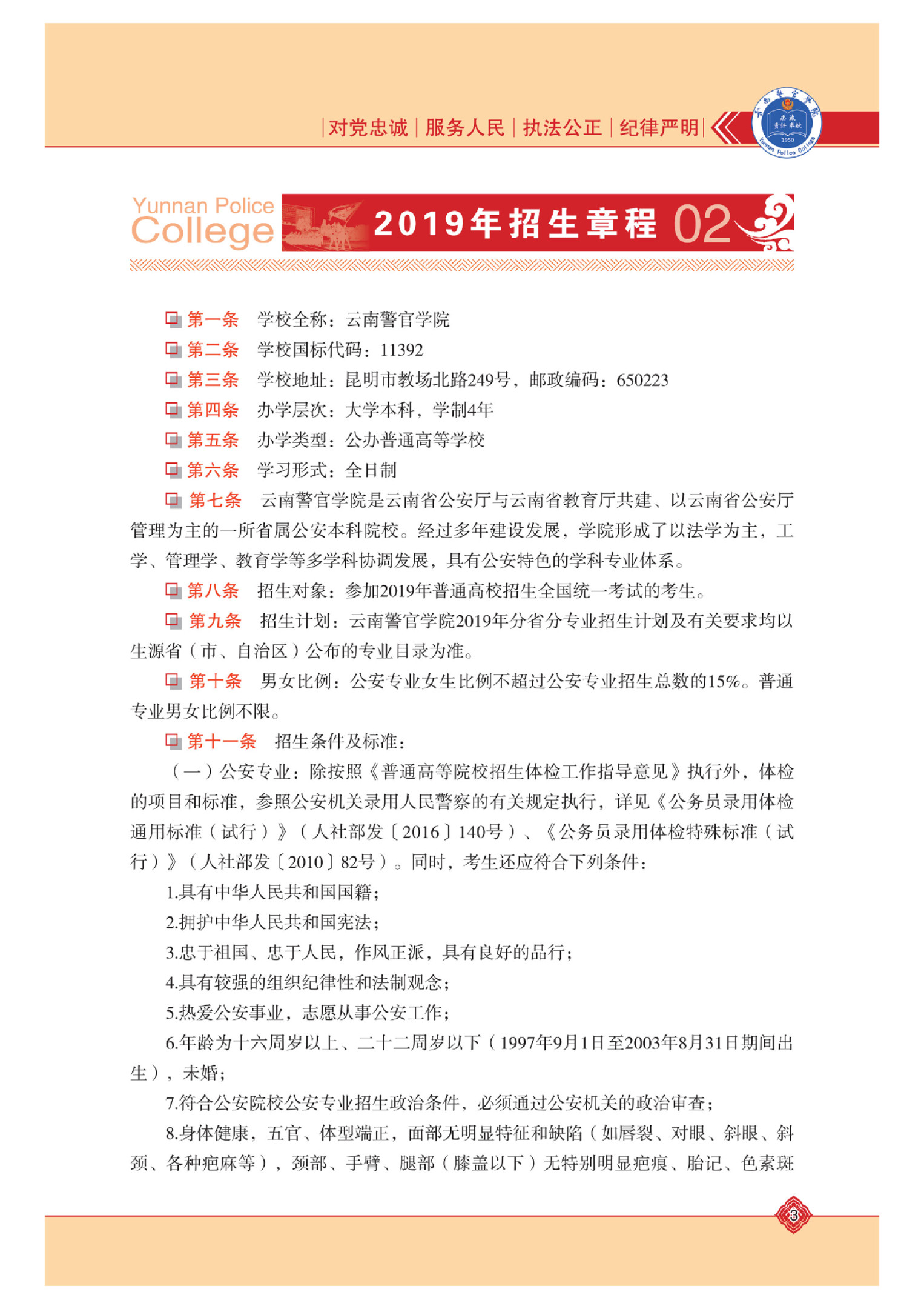云南警官学院2019年报考指南