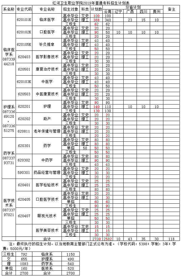 注:最终执行的招生计划,以云南省教育厅正式公布为准。(五年制大专招生代码:530750;中专招生代码:530518)
