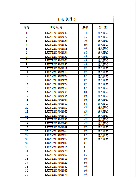 2019-2020年丽江市志愿者招募笔试成绩公示
