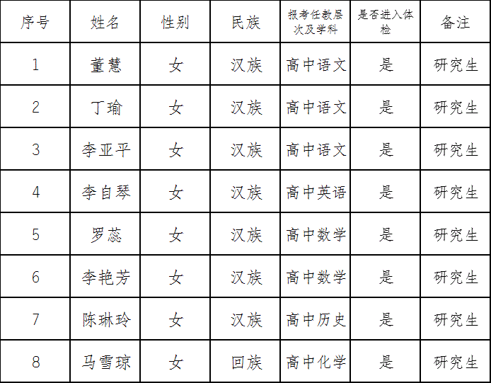 根据《曲靖市沾益区教育体育局所属中学2019年公开招聘教师实施方案公告》的相关规定,现将曲靖市沾益区教育体育局所属中学2019年公开招聘教师拟进入体检人员名单公告如下: