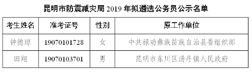 昆明市防震减灾局2019年拟遴选公务员人选公示