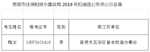 昆明市住房和城乡建设局2019年拟遴选公务员人选公示