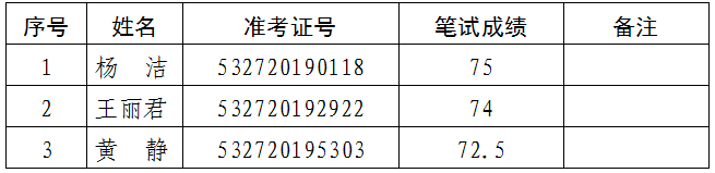 根据《普洱市妇女联合会2019年公开遴选参照公务员法管理单位工作人员公告》(第1号),普洱市妇女联合会于2019年12月7日开展了“综合管理岗职位(职位代码B002001)”公开遴选的笔试工作。现将有关事项公告如下: