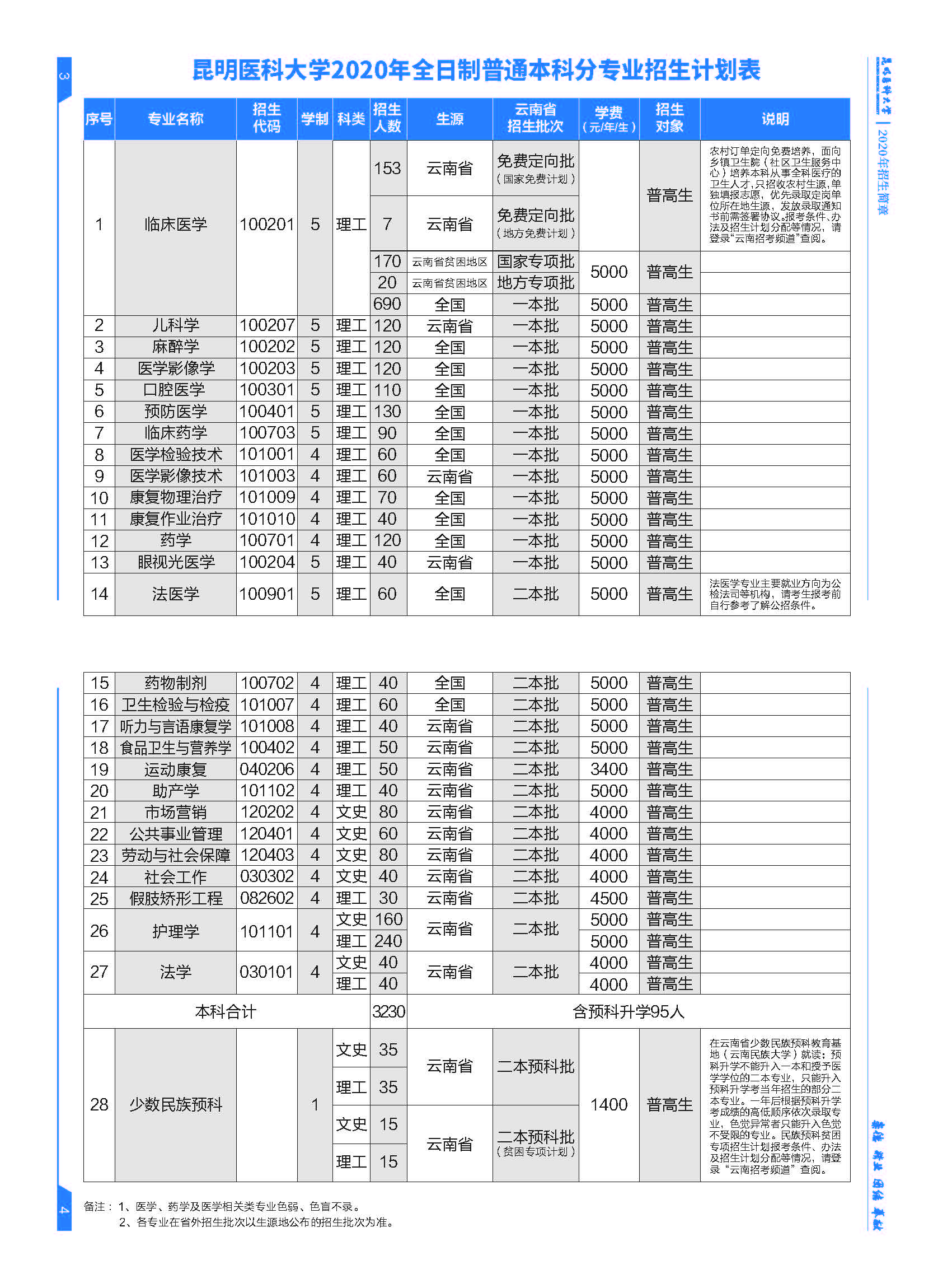 昆明医科大学2020年招生简章